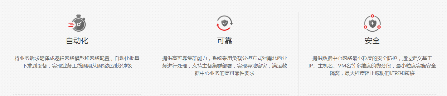 Agile Controller-DCN采用開放架構(gòu),開放豐富的標(biāo)準(zhǔn)接口,北向支持與業(yè)界主流OpenStack云平臺(tái)實(shí)現(xiàn)L2~L7層對(duì)接,南向支持管理物理交換機(jī)、虛擬交換機(jī)、防火墻等物理和虛擬網(wǎng)絡(luò)設(shè)備。Agile Controller-DCN通過北向接口接收以用戶為中心的業(yè)務(wù)訴求,并將其轉(zhuǎn)換為網(wǎng)絡(luò)配置、批量下發(fā),實(shí)現(xiàn)網(wǎng)絡(luò)自動(dòng)化。在沒有云平臺(tái)的場(chǎng)景下,Agile Controller-DCN提供獨(dú)立業(yè)務(wù)發(fā)放GUI。