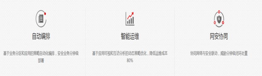 | 策略編排 | 基于網(wǎng)絡分區(qū)、應用互訪關系、安全服務、VPC,自動化下發(fā)安全策略 | |||